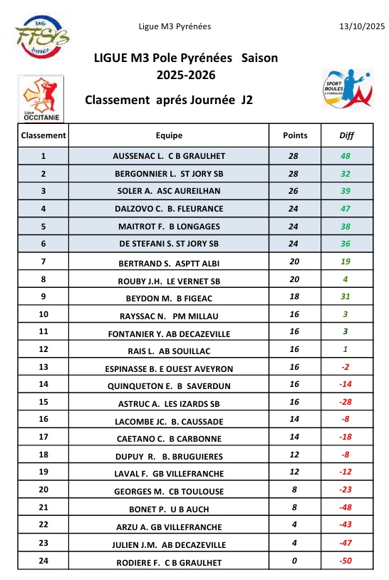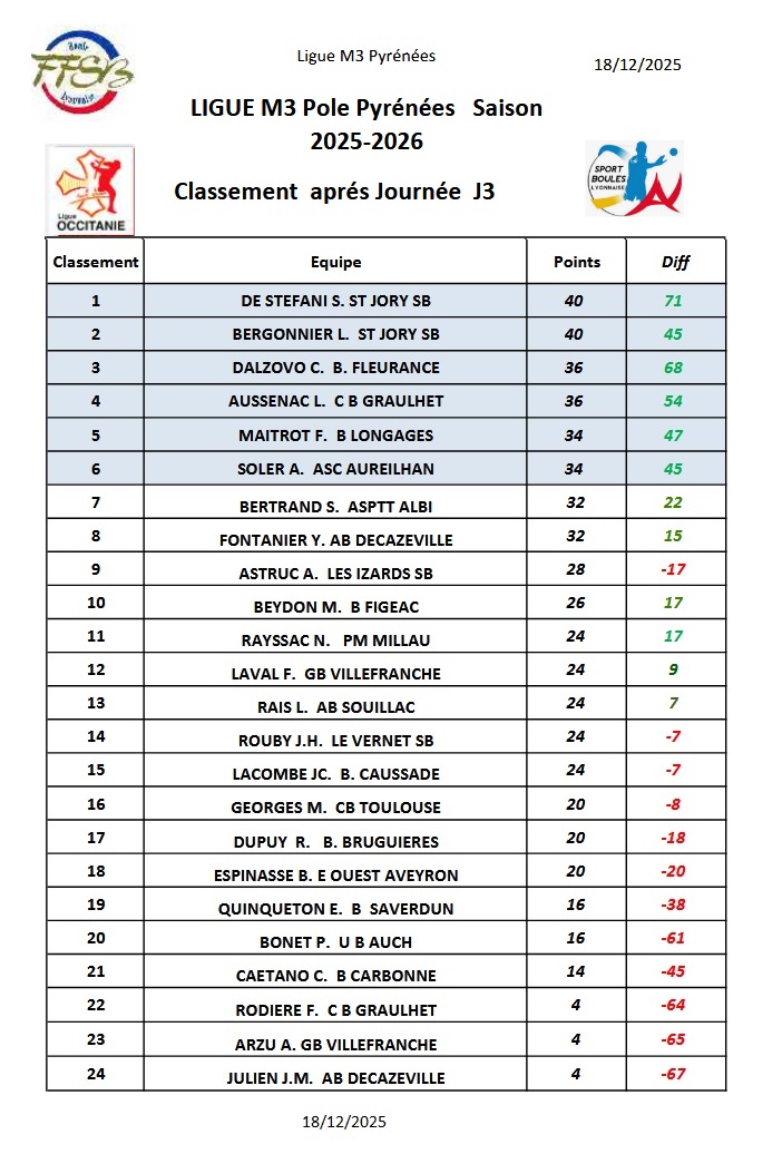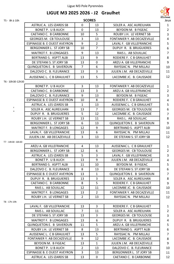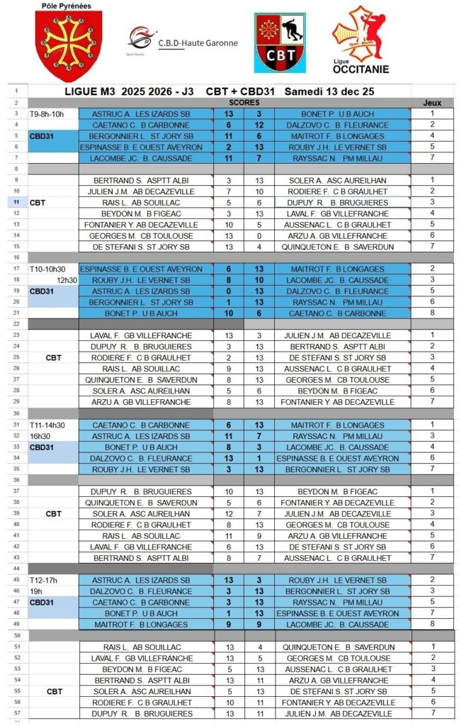 Ligue M3 – Journée3 – le 13 Décembre 2025- CBD31& CBT